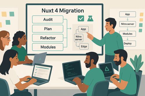 Nuxt4 移行のイメージ図 こんにちは。開発チームでフロントエンドを担当している芳賀です。 Nuxt 4 がリリースされましたね! kickflowでも、この度Nuxt 4へのアップグレード対応を行いました 結論から言うと、移行作業は想像以上にスムーズでした。これは…